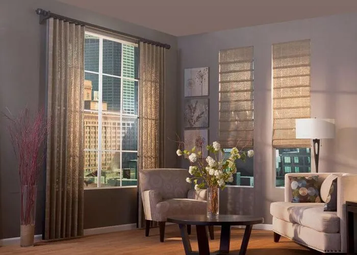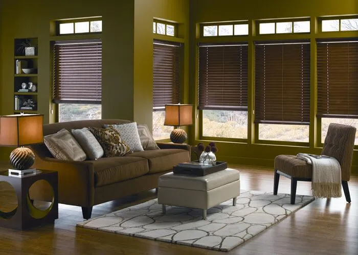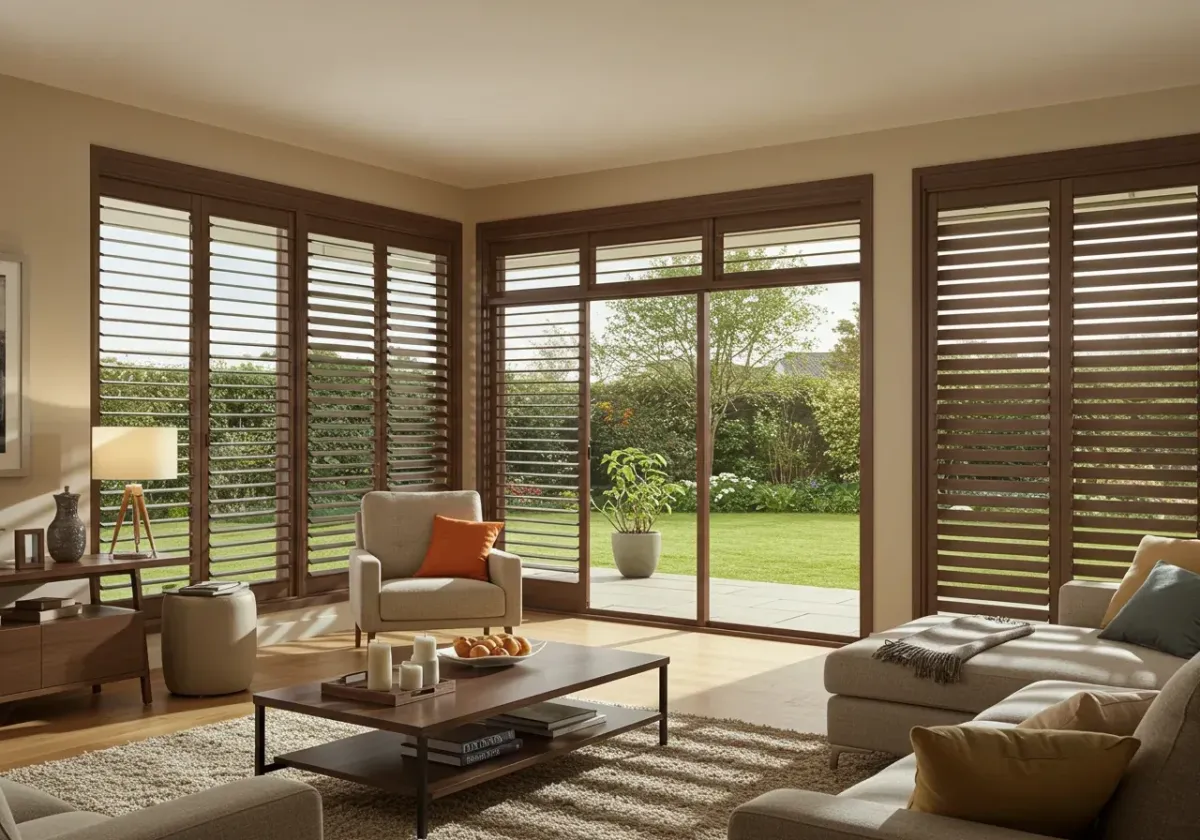 A blend of solid wood and faux wood shutters with a durable, long-lasting finish.